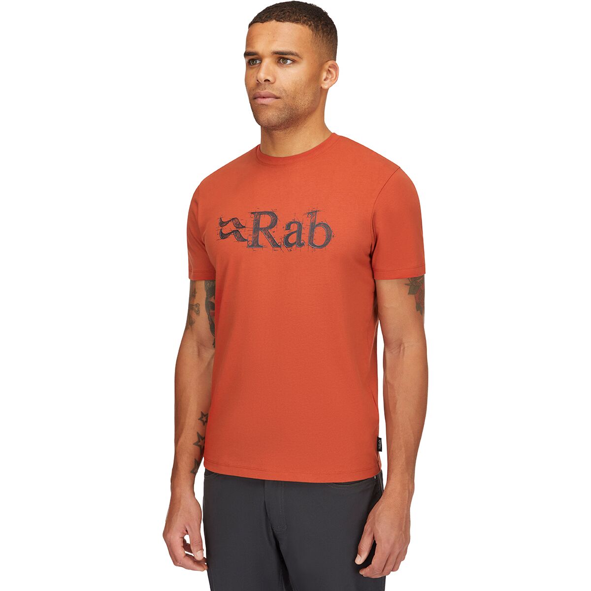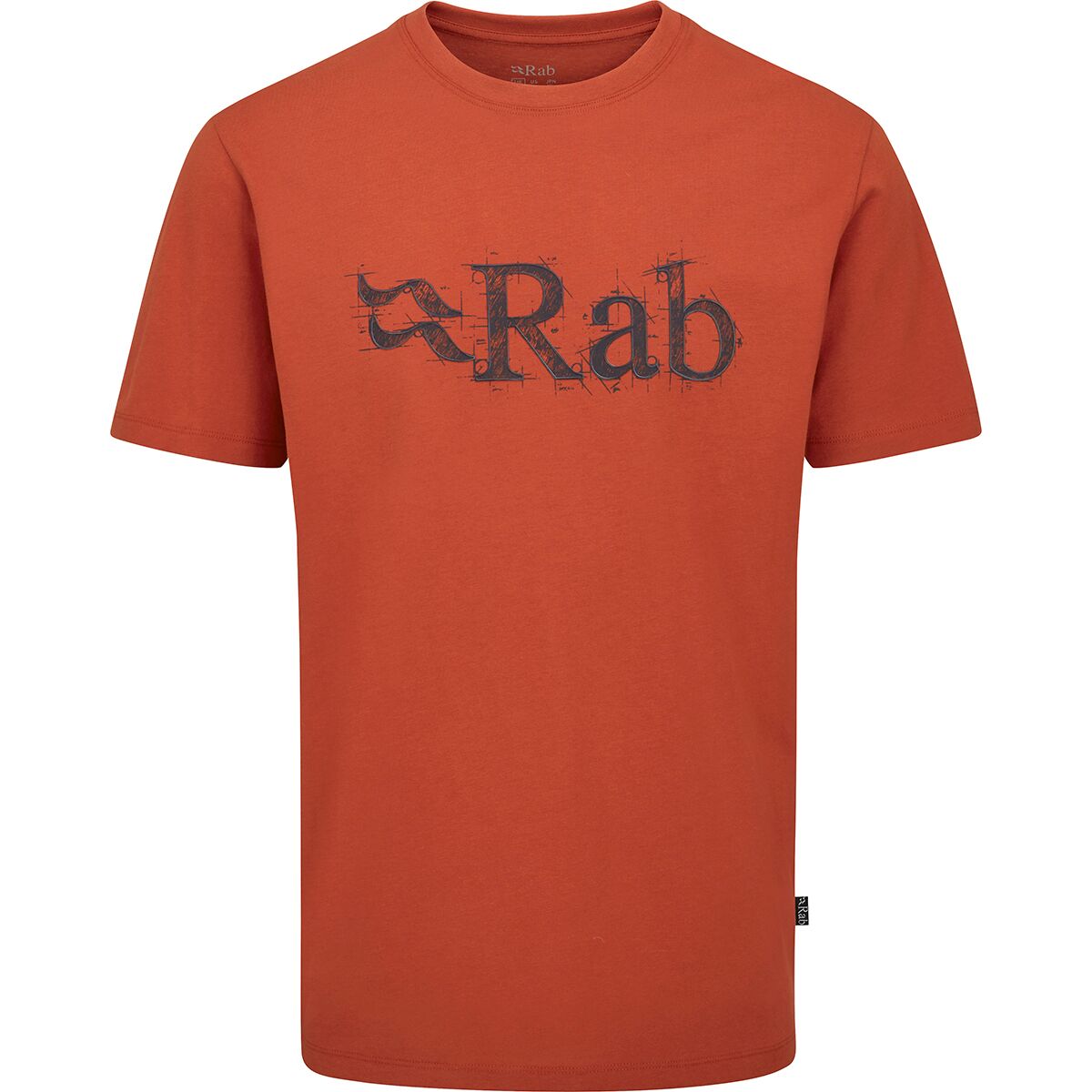 - Rab technical sketch logo adds a subtle outdoor-inspired touch