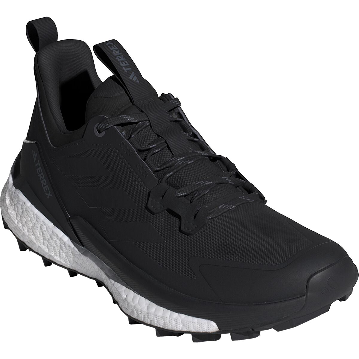 From day hike to multi-day trek, these adidas Terrex Free Hiker 2.0 Low Hiking Shoes support your feet with the lightweight feel of a trail runner and the stability of a hiking boot. A breathable, waterproof upper helps your feet regulate their temperature, and the gusseted tongue construction offers step-in ease and comfort. The BOOST midsole energizes every stride with extra energy and provides all-day comfort. The EVA frame adds stability through rugged, rocky terrain.