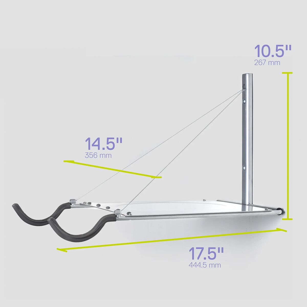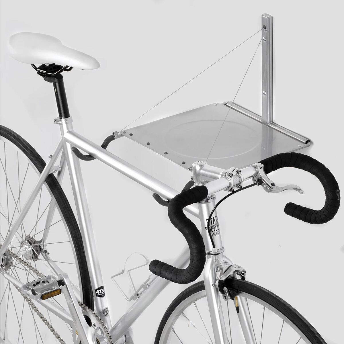 Delta Single Bike Wall Mount Rack with Shelf Easy horizontal mount for most bikes Custom formed steel accessory shelf folds down to hold other gear Molded rubber arms protect bike...