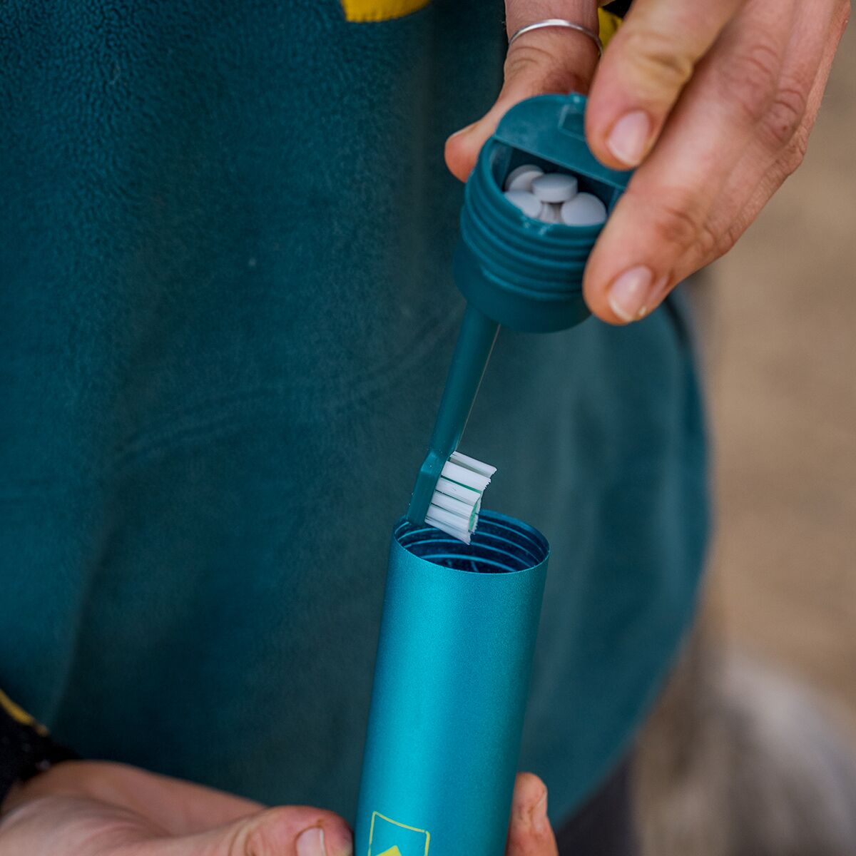 Adventure Ready Tooth Care Capsule Details Item #AMKF0EA Tech Specs Materialaluminum Dimensions4.7 x 2 x 1.5in Claimed Weight2.8oz Activitytravel, camping